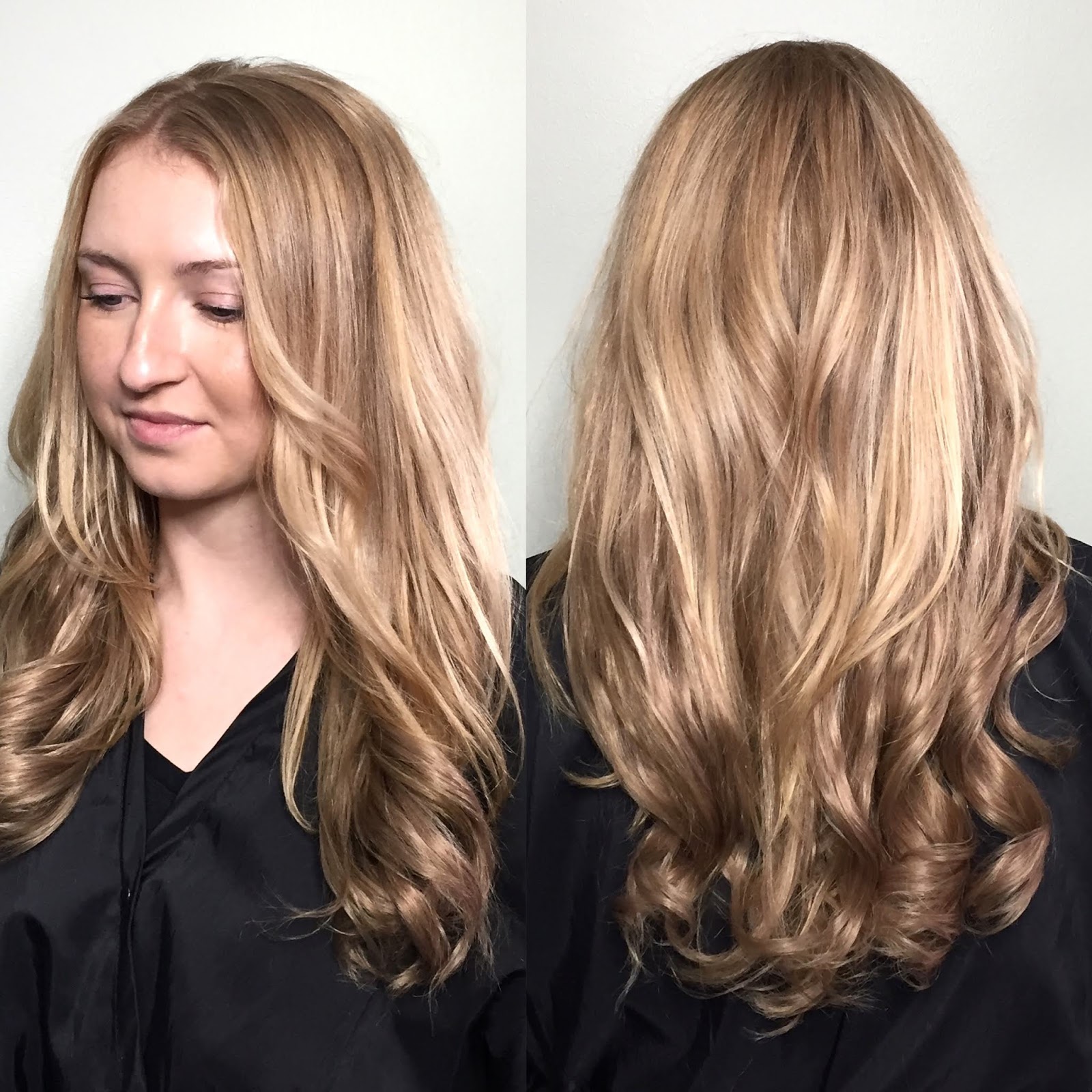At her check-up, I blended the cut to lighten up the bulkiness, and I taught her to coax her natural waves. At her move up appointment, I wanted to switch out some of the wavy pieces for straight extension hair, in a blonder color. This way there would be a great blend of texture and color, without her feeling too dark.